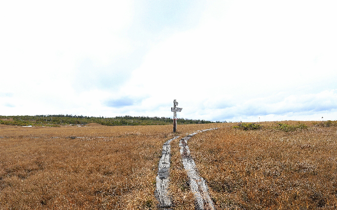 山頂湿原の入口付近(猿倉口側)。前ぶれなく現れる湿原に驚きます。