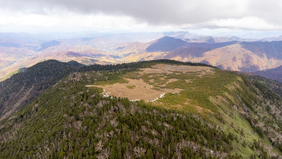 山頂に着くと広大な湿原が目の前に現れました。標高1926m。取材日は曇りでしたが雲は高く、近くの山々が見渡せました。