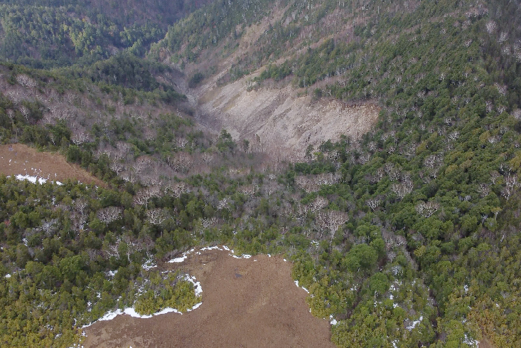 一方、田代山とその周辺地域にはこれまで幾度となく大雨、台風による水害等が起こっています。被害が大きかったのが令和元年10月の台風19号でした。麓の湯ノ花地区、木賊地区は甚大な被害を受けます。さらにこの時、田代山の西側斜面は山頂の湿原にあと少しのところまで大きく崩落しました。