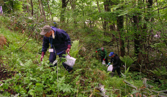 プロテクターは、さまざまな局面から尾瀬の自然保護に関わる実働的なボランティアです。入山口でのルール・マナー啓発をはじめ、ゴミ拾いや外来植物の除去、シカ柵の設置などを行っています。登山を楽しむついでに道中のゴミを拾うなど、個人でも気軽に行える活動もあります。