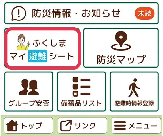 - ❶トップ画面から「マイ避難シート」を