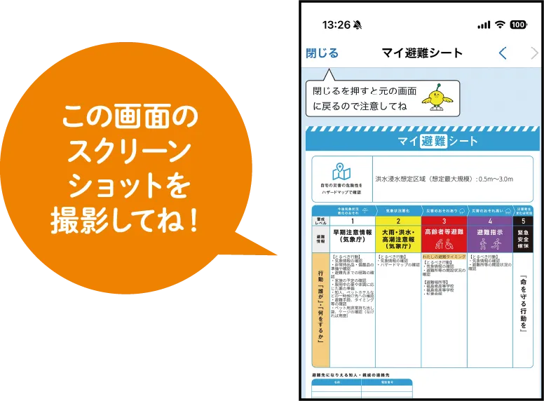 作成したマイ避難シートを