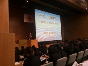 平成31年4月4日、昨年に引き続き、新入職員の導入研修(参加者数341名)で、東京事務所長が「ふくしまの今」と題して、本県の現況を直接お伝えさせていただきました。