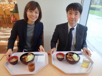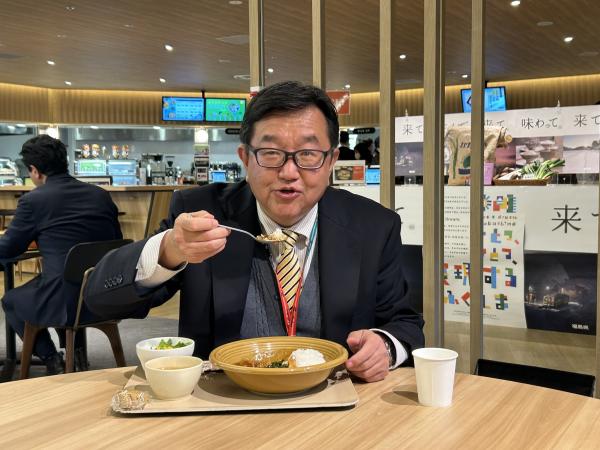 3月11日は「安達太良カレー」と「福島県産ハーブ鶏唐揚げ ゆず香る酒粕みぞれあん」、12日は「福島県すずきのバジル焼き酒粕ドレッシング」と「会津煮込みソースカツ丼」が提供され、福島県産食材をふんだんに使用いただきました。(3月17日(月)~19日(水)は「会津山塩ラーメン」を提供。)今年度は5,400名のグループ社員の皆様に福島が誇る食材を味わっていただきました。