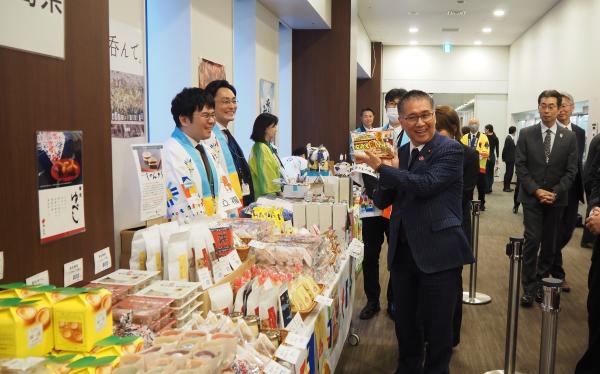 オープニングセレモニーでは、東京事務所長とHAPPYふくしま隊がこれまでの御支援に対する感謝の気持ちを伝え、また、ご当地グルメ「マトンケバブ」や、銘菓や地酒など多くの県産品を購入いただきました。