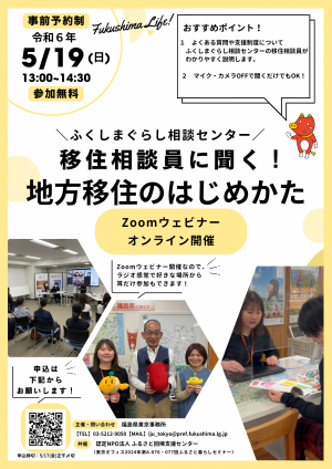 「\ふくしまぐらし相談センター/ 移住相談員に聞く!地方移住のはじめかた」を開催します!