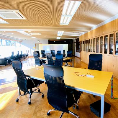旧職員室を改良したコワーキングには十分なスペースがあり、奥にはこたつスペースや簡易の個室があります。今年度無料開放し、来年度も継続検討とのことです。