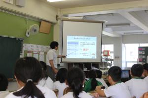 〇いわき市立平第五小学校 4年生4クラスで授業を実施しました。 穴埋め形式のテキストを使って、前半はアンケートや天気予報など身近なものを例に「統計とはなにか」と「統計の大切さ」について学びました。 後半は最新の統計データを使いながら、福島県の土地や人口などいろいろなことを紹介しました。 | |