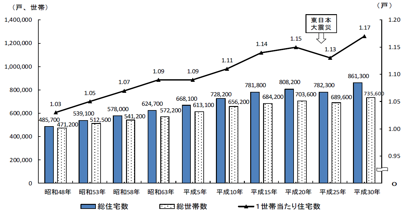 ・ 総住宅数は861,300戸。前回調査(平成25年)と比べ79,000戸(10.1%)の増。