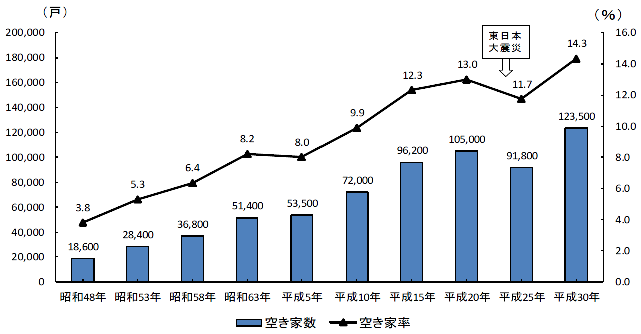 ・ 空き家数は123,500戸。平成25年と比べ31,700戸(34.5%)の増。