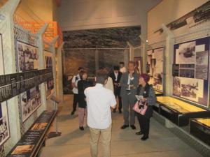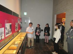 〈学芸員の説明を受けながらの見学(1)〉 〈学芸員の説明を受けながらの見学(2)〉