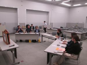 〈意見交流〉 〈交流の継続を願って・集合写真〉 〈青木氏による震災講話・沖縄県庁〉
