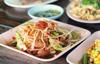 ソムタム…青いパパイヤを使ったサラダのことで、シャキシャキとした食感と少し辛めの味付けが最高です。
