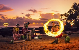 ファイヤー・ナイフダンス「フィアフィア」…木製の太鼓のリズムに合せて、火とナイフを使った勇壮なダンス。