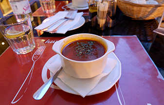 グヤーシュ…牛肉・タマネギ・パプリカなどを煮込んだスープ。