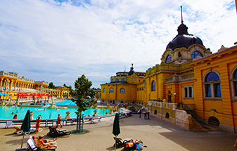 セーチェーニ温泉…ブダペストにあるヨーロッパ最大の温泉。屋内に15種類、屋外に3種類の浴槽がある。温泉につかりながらチェスを楽しむこともできる。