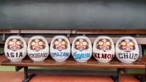 各校のユニフォームをデザインしたオリジナルの「白河だるま」を制作し、3日(土)の開会式では、6校を代表して亜細亜大学の 田中幹也 主将と、中央大学の 北村恵吾 主将に、内堀知事からそれぞれ手渡しました。