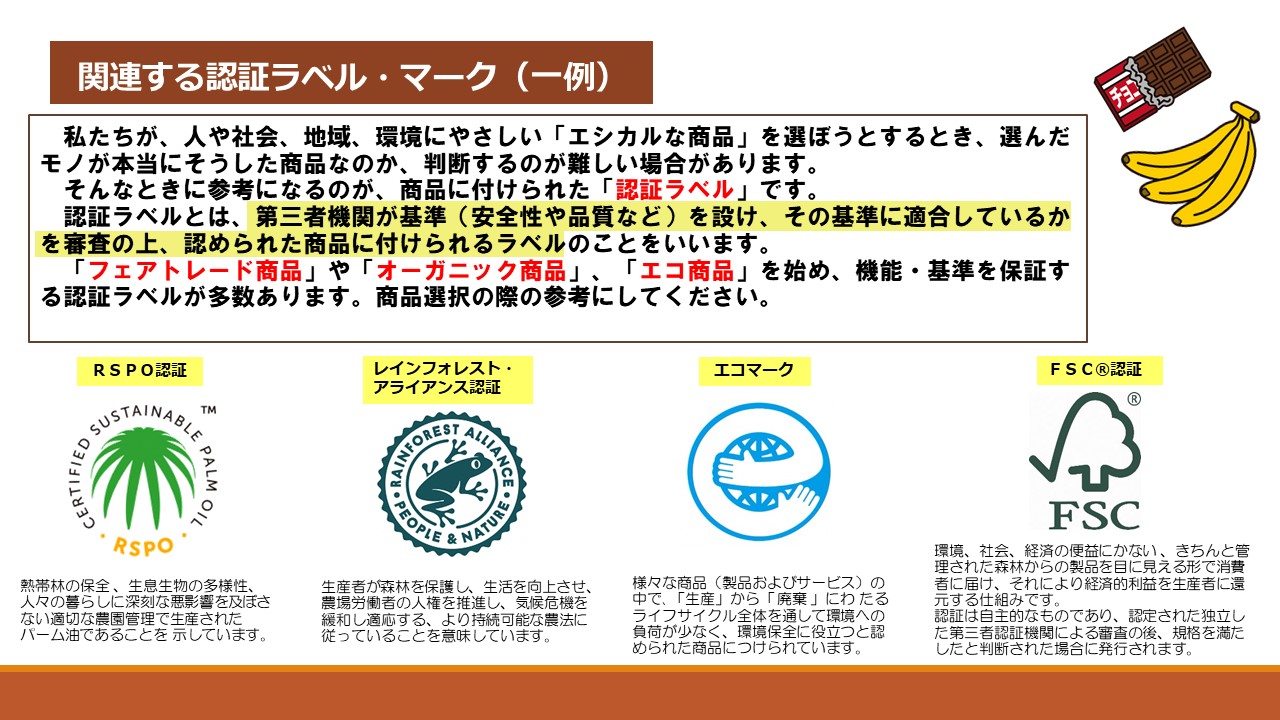 実物のパネルは、県消費生活センターで展示しております。また、漫画のほか、エシカル消費に関連する認証ラベル・マークの一例を掲載したリーフレットも併せて展示しておりますので、ぜひ、ご覧ください。