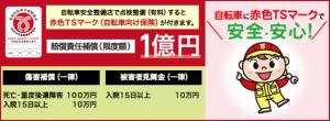 ※2 Tsマークは、自転車安全整備店で購入又は点検整備を行い、基準に合格した自転車に貼付されるもの。(保証期間は1年間)