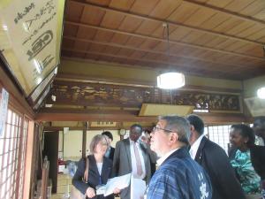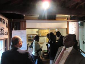 野口英世記念館を視察後、両博士は会津若松市にある野口英世青春館を訪問し、照島代表による野口英世博士についての御説明の後、歴史や野口英世が実際に使った代物、世界での活躍についての展示物を興味深く見学し、説明を受けていらっしゃいました。