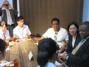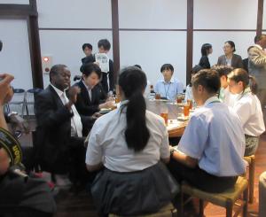 嘉永蔵視察後は、嘉永蔵のホールで会津若松市主催の野口英世アフリカ賞受賞者と地元の高校生による意見交換会が開催されました。