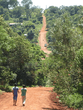 オベラ郊外の風景。中心部から車で3分も走れば、急斜面の多い、むき出しの道路があちこちに見られる。まさにジャングル。
