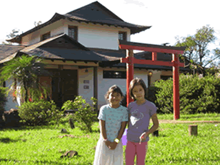 オベラには、学校としての建物はない。週1回、日本人会館を借りて授業。休み時間に小学校2年生の仲良し2人をパチリ!