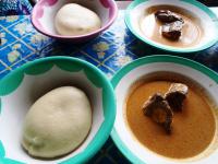 ベナンの中部でよく食べられます。皮をむいてふかしたイニャムという芋を杵でついてお餅のようにしたものを、ピーナッツの辛いソースと一緒に食べます。