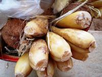 これもココナツと一緒に食べます。食感が繊維質で、甘くない干芋のようです。