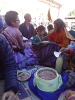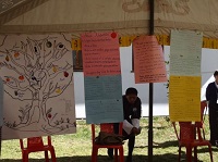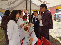 | 昨年に引き続き(2012年11月参照)イベントがありました。今回は、看護学生が食に関する情報提供を行っていました。6グループに分かれており、同僚とともに、各内容に点数を付け評価しました。恥ずかしがったり積極的だったりする学生の様子は、日本もブータンも同じであることが分かりました。 |