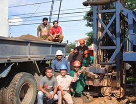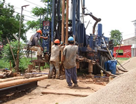 サンタクルスの町並みは、カテドラル(大聖堂)のある、プラザ ベインテクワトロ セプテンブレ(9月24日公園)を中心に、南北に長い卵型の放射状に発展しています。そしてプリメロアニージョ(一番目の指輪)、セグンドアニージョ(二番目の指輪)と呼ばれる環状線が幾重にも広がっています。写真の現場は、クワトロアニージョ(第4番目の指輪)において250M掘削しました。 此方の人々の殆どがカトリック教徒ですので、掘削後ケーシングとフイルトロ挿入するときにお祈りをします。今日はAKIRAにやって欲しいということで宮嶋が神に祈りを捧げることになりました。 Padre nuestro que estas en los cielos Santificado sea tu nombre Venga a nosotros tu Reino Hagase tu voluntad aqui en la tierra como en el cielo, Danos hoy nuestro pan de cada dia Perdona nuestras ofensas, Asi como nosotros perdonamos a los que nos ofenden No nos dejes caer en tentacion y libranos del mal Amen と必死に暗記してシドロモドロで祈りを捧げました。 今は送水ポンプと周辺機器も設置され。とても順調に取水出来ています。 2010年7月より地下水モニタリングの部署がサンタクルス県基礎サービス局にでき、現在はそこを中心に活動をしています。