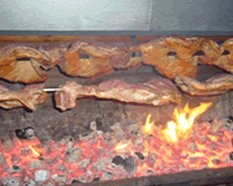 総会後の会食用焼肉風景。巨大な牛肉の塊。