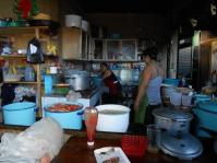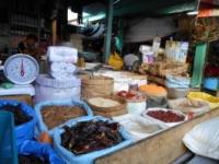 庶民の台所である市場。肉屋・八百屋・花屋・駄菓子屋・食堂・服屋・靴屋・民芸品屋・手芸屋etc狭い路地に沿って所せましに店が軒を連ねています。 (1)市場の食堂 朝6時ころから仕込みを始め、正午ごろに開店します。メニューは日替わりが一般的。毎日2、3品のメニューを提供してくれます。店によるが、毎日100~200食くらいを販売し、完売次第終了。閉店後は片付けと次の日の仕込みに取り掛かります。 (2)市場の木炭屋 グアテマラでは薪での調理が主流です。そのため、木炭は生活必需品。写真左の黒いジャケットはJICAボランティア。習いたてのスペイン語で現地の人との会話に挑戦‼お店のおばさんたちは彼の片言のスペイン語にも優しく耳を傾けてくれました。 (3)市場の香辛料屋 頭陀袋にバリエーション豊かな香辛料が入っています。必要に応じて量り売りしてくれます。 (4)市場での葉っぱ屋。バナナの葉など大きくて丈夫な葉っぱを売っています。いくつかのグアテマラの伝統料理は葉っぱに包まれて調理されます。口に運ぶとほんのり緑の香りを放ちながら、優しい味わいを出す料理には欠かせない葉っぱたち。 (5)市場の陶器屋 グアテマラではフクロウが縁起の良い鳥とされている。フクロウの貯金箱や置物が多く売っている。写真の真ん中にはクリスマスらしく聖誕の置物が。 (6)市場の蝋燭屋 グアテマラは人口の40~60%がカトリック信者。彼らが祈りを捧げる時に欠かせないのがこの蝋燭。日本でいうお線香のようなものでしょうか。市場内だけでなく教会のそばでも蝋燭を販売しています。 |  食堂 |