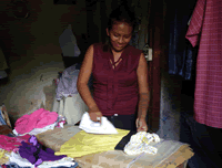 彼女は、時々、時間のあるときに教会で歌を歌うのが好きなの だそうです。この日も、歌を歌いながら楽しそうにアイロンがけをしていました。