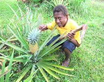 パプアニューギニアには大きく3つのパイナップルがあります。トゲトゲがあるもの、トゲトゲはあるがやや優しいもの(日本でよく売られている)、やや丸みを帯びたもの(日本では缶詰にされて売られている)。この3つのパイナップルすべてに言えることは、芯まで甘く美味しいということ。 私はパイナップルが大好きで毎週一つは食べています。値段は大きいもので一つ200円程度の安値で売られていますが、それでも高いという話を聞きます。ここパプアニューギニアは大家族なので、一度の食事で4つ5つは当たり前です。そうすると一つ200円は高いのかもしれません。 |