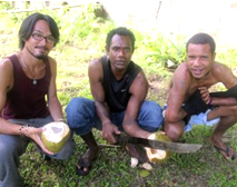 | 日本でもおなじみ、パパイヤ。ポポが入るくらいの大きい冷蔵庫があれば冷やして食べるとより美味しい。皮が薄く、鳥やコウモリに食べられてしまう前に木に登って収穫します。一つ300円前後。もし熟す前のポポを買ってしまったらジャガイモの代わりにカレーに入れても美味しい。ちなみに発音が「ポポ」、ではなく、「ポゥポゥ」と小さい「ゥ」が入ると、ある現地語で「大きいおっぱい」という意味になってしまうので注意しましょう。 |