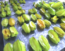 | 5つ星をイメージするフルーツ。大人から子どもまでみんな好きです。味は少し酸味がある梨のような、リンゴのような感じ。冷蔵庫で少し冷やしてから食べたほうが美味しい。 |
