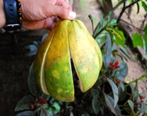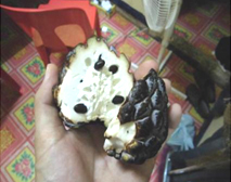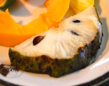 | カスタードクリームを彷彿させる甘さのようでもあり、洋ナシのように爽やかかつ上品な甘さのようでもある美味しいフルーツ。熟す前に収穫し、手で皮がむける位柔らかくなれば食べ頃で、香りもいい。 |