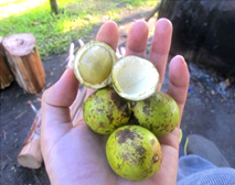 | 1年に何度も食べることができる木の実、ラォラォ。5つ10円程度で売られています。味は、少し酸味と甘味があり、古いリンゴのような食感。ラォラォの木の下でラォラォパーティーをすると楽しく、その時はやや美味しさが感じられます。 |