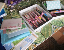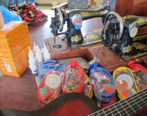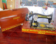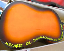 ミシンの台とケース、ソーイングセット、ギターの裏には「Donated by Xaverio J.H.S in Fukushima Japan(福島県のザベリオ中からの寄付)」とペイントを施しました。 |