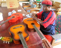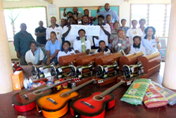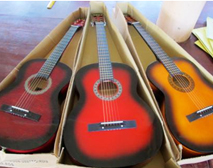 2、ギター(3本)と弦 Music(音楽)の授業で使うギターと、古いギターの新しい弦(各20本ずつ)。クラスにあるギターは15本中8本が弦がなく使われていない状態でした。マヌス島は湿気が多く、チューニングするネジや弦が錆びやすく、そして弦が切れやすくなっています。現地の物価を考えると、高価なものになります。そこで、ギターの適切な保管場所や保管の仕方を音楽の先生と話し合いながら一緒に古いギターの弦の張り替えをしました。ギターは音楽の授業だけでなく、各行事やミサ曲を歌う時にも使われます。