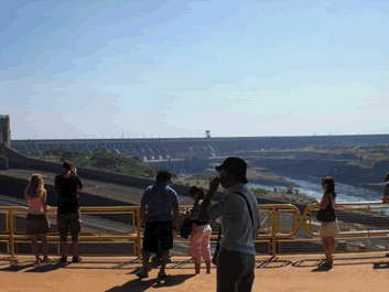 先日世界最大のイグアスの滝を見に行く途中で、その滝の近くにある今は世界第二の大きさ(中国・三峡ダムが世界一、22,400メガワット)のイタイプー発電ダムを見学してきました(写真1)。