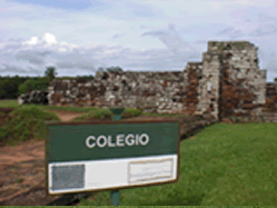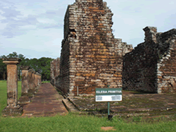 首都アスンシオンから南へ400~500km、アルゼンチンとの国境近くにエンカルナシオン(encarnacion)市があり、この街から北東へ約30kmのところにパラグアイで唯一つ世界遺産に登録されているトリニダ遺跡があります。1700年ごろイエズス会によって伝道目的に建設された村・先住民指定地の跡(写真1)です。イエズス会の宣教師はパラグアイとアルゼンチンとの国境となっているパラナ河の両側で活動していて、アルゼンチン側にもいくつかの先住民指定地の跡があります。それらの中心的位置にあったのがエンカルナシオンで、この都市の名はスペイン語で「キリストの受肉・化身」と言う意味です。