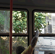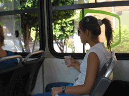コップをバスの窓から捨てる瞬間 この瞬間の写真はなかなかとれなかったのです 。