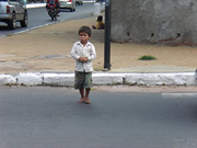 街の中にはあちこちに大きなピストルを持ったお巡りさんがいて街の中の治安は維持されているので、通常はそんなに危険を感じることはありません。しかし子供が信号のところで車の窓ふきをしたり、バスの中に何かを売りに来たり、はだしで街を歩く子がいたり(写真2)で、他の発展途上国と同じです。 みんなが貧しくとも平等に分配をする社会主義的政策がいいか、貧富の差ができても経済発展を重視する市場経済主義がいいか、パラグアイの大統領になったつもりでいろいろ考えるのですが結論が出ません。