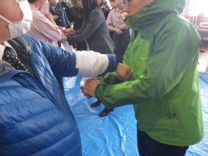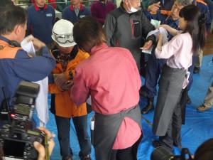 また、避難者が受傷したことを想定し、観光施設の職員が福島市消防本部の指導を受けて応急救護訓練を実施しました。