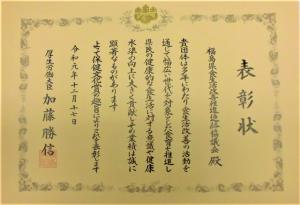 福島県食生活改善推進協議会が第71回保健文化賞(第一生命保険株式会社主催)を受賞しました。