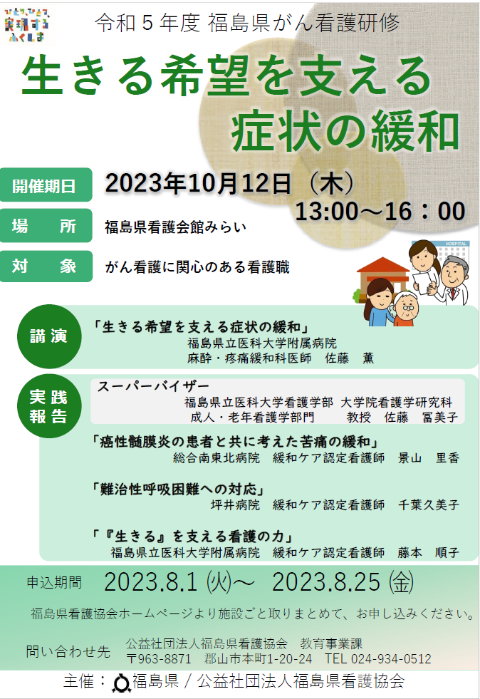 令和5年度 福島県がん看護研修 開催のお知らせ