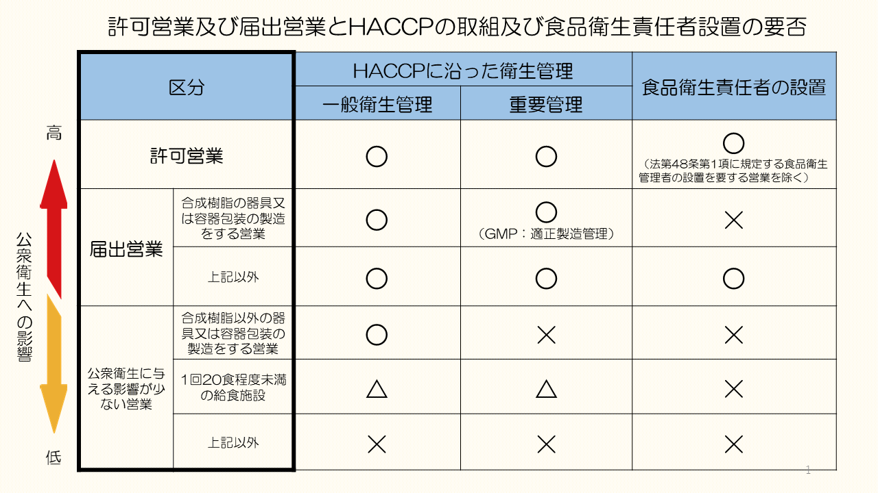 営業区分によるHACCPの取組と食品衛生責任者の設置の要否 [その他のファイル/122KB]