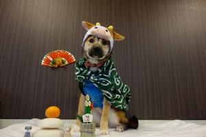 悩んだ結果、結局、 ちびをあったかいお正月バージョンの装いに! ちびもきっと気に入っている? (ちび→何をされているんだろう) でも、あったかい・・・。 |